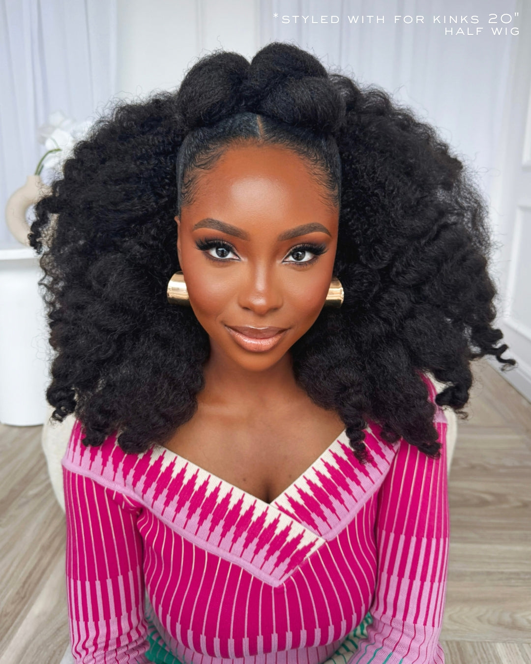 The adjustable cap construction allows for three effortless looks—wear it behind the hairline for an instant natural flip-over style, as a half wig with minimal leave-out, or pull it into a high or low puff for easy versatility. Each wig is pre-washed, pre-styled in a defined, natural texture, and ready to wear straight from the box.