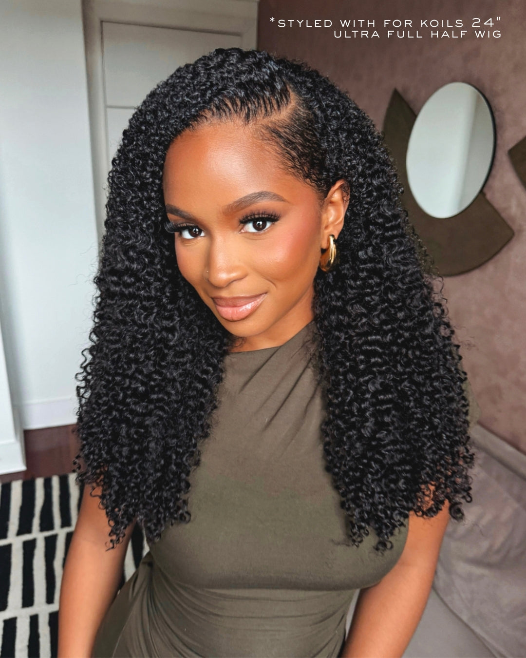 Effortless, elevated, and made to move with you. Meet the For Koils Half Wig—our 3-in-1 styling essential designed for your ease and endless versatility. Crafted from 100% virgin human hair with fine S-pattern curls and a natural medium-to-low luster, it’s made to blend beautifully with 3B–3C textures for a full, defined finish.